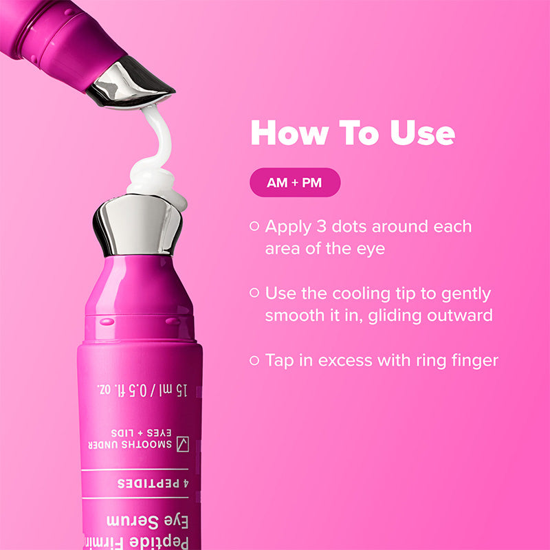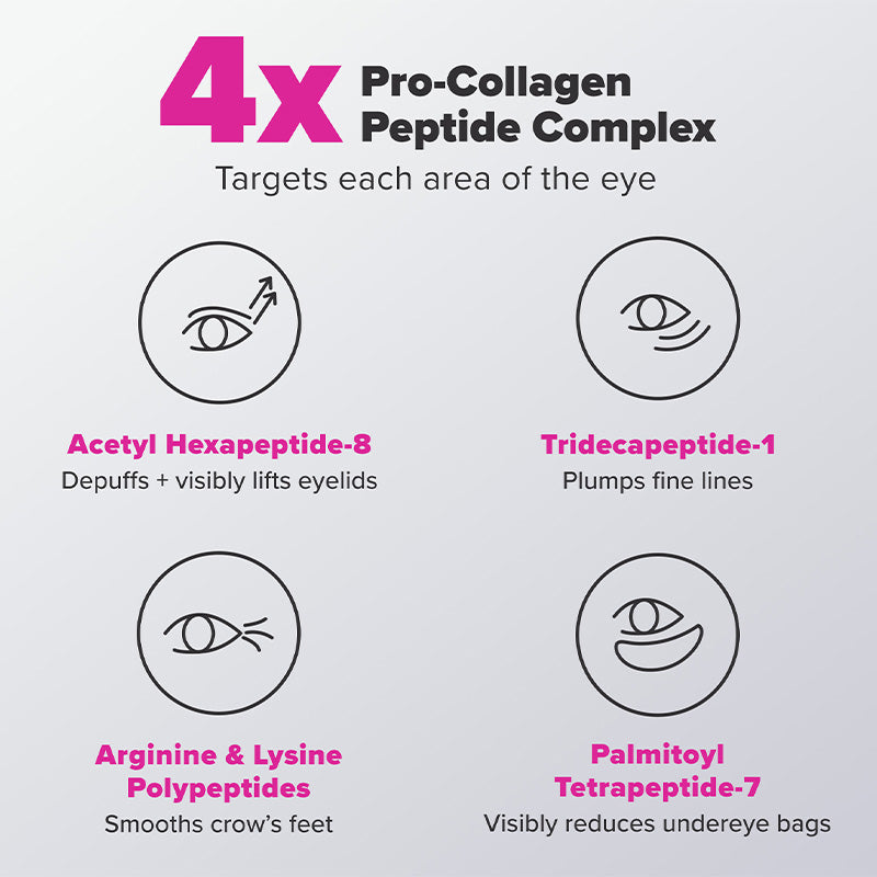 A clinically proven gel eye treatment & cooling tool powered by four eye-targeted peptides to visibly lift lids, smooth fine lines, depuff & hydrate.